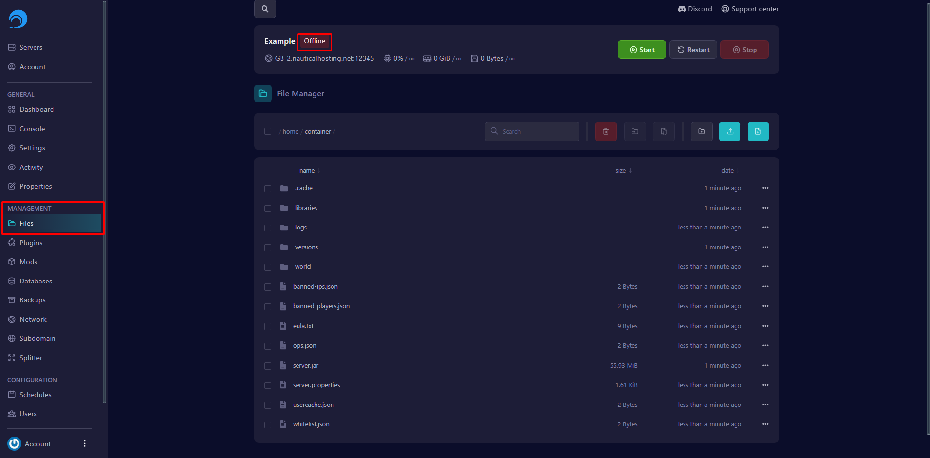 - Navigate to your server's dashboard